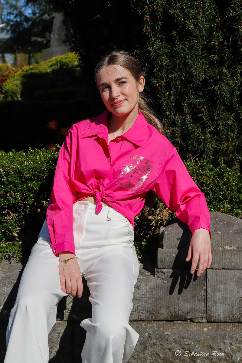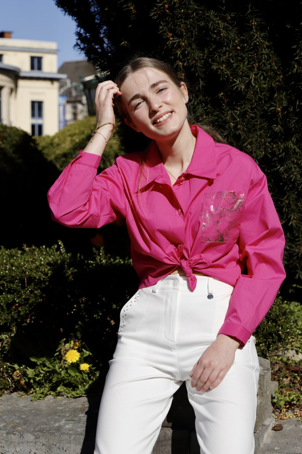 Affirmez votre style avec ce chemisier rose fuchsia vibrant, parfait pour illuminer vos looks du quotidien. Sa coupe courte et droite apporte une touche moderne et dynamique, idéale à associer avec un pantalon taille haute ou une jupe. Doté d’une poche poitrine imprimée lamée « La Croisette », il mêle audace et féminité avec subtilité.